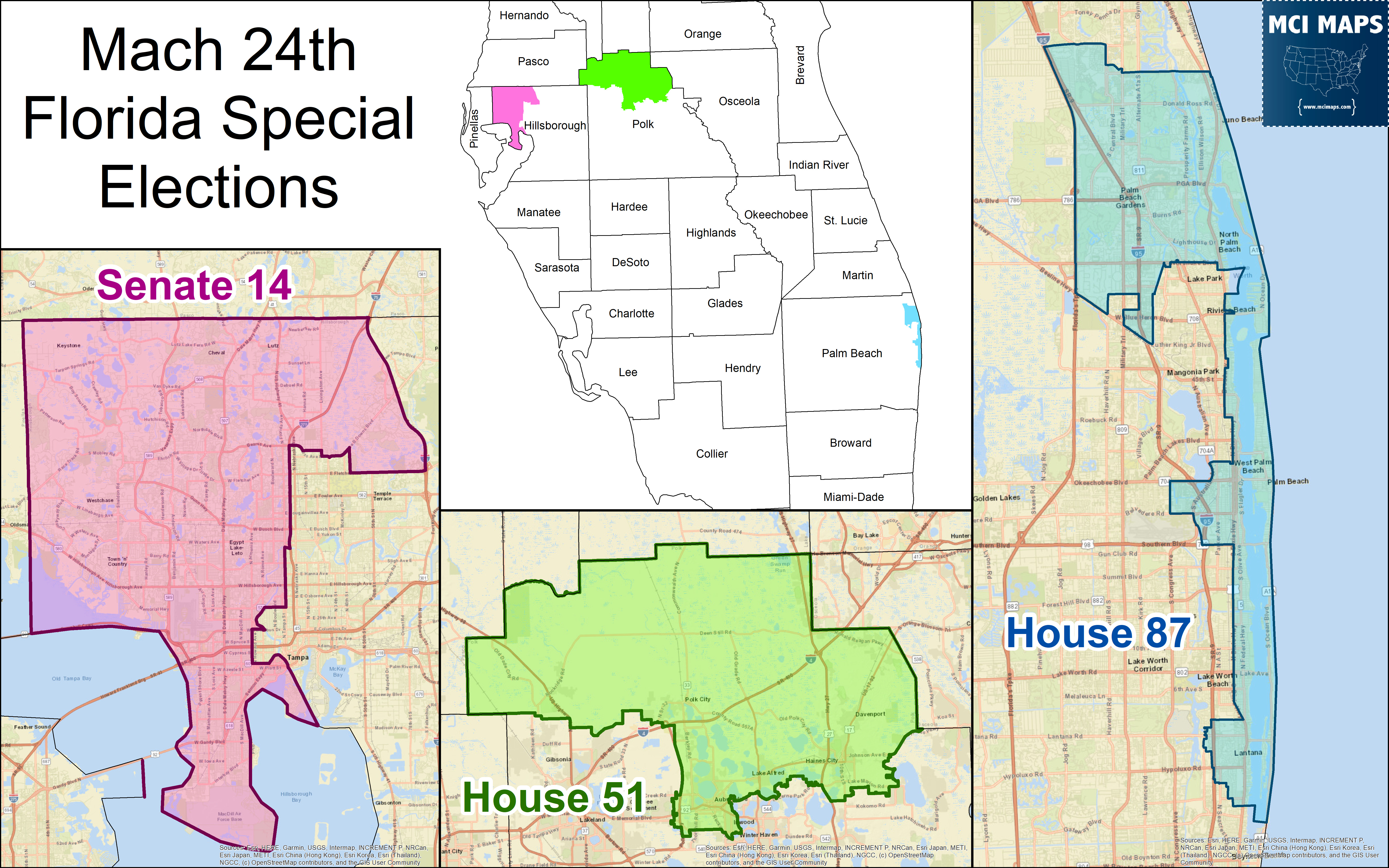 On Tuesday, March 24th, Florida will be holding special elections in three state legislative districts. Voters in Hillsborough, Polk, and Palm Beach will be casting ballots to replace three Republican lawmakers, all who represented Trump-backing districts in the 2024 elections.